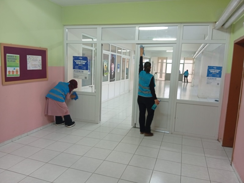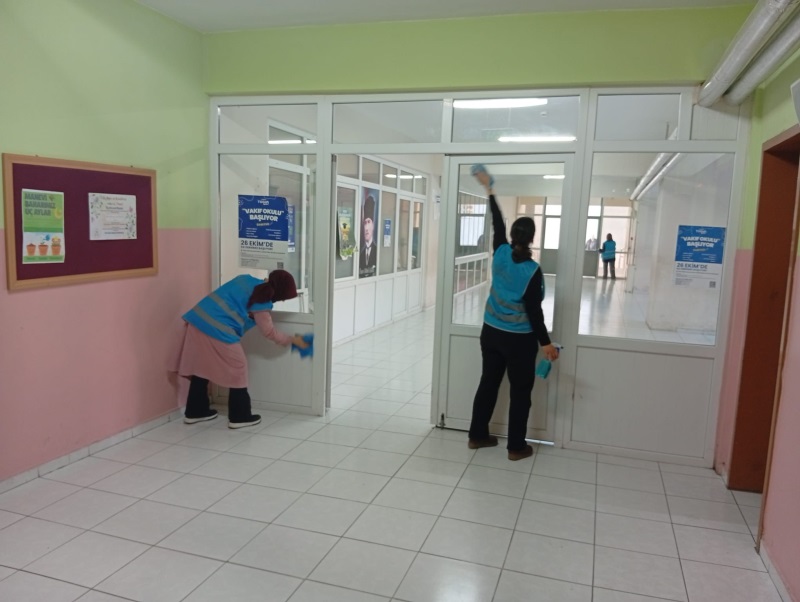 Müdürlüğümüz, eğitim kurumlarında hijyenin sağlanmasına yönelik temizlik çalışmalarına okulların tatil olduğu dönemlerde sürdürmeye devam edecektir.