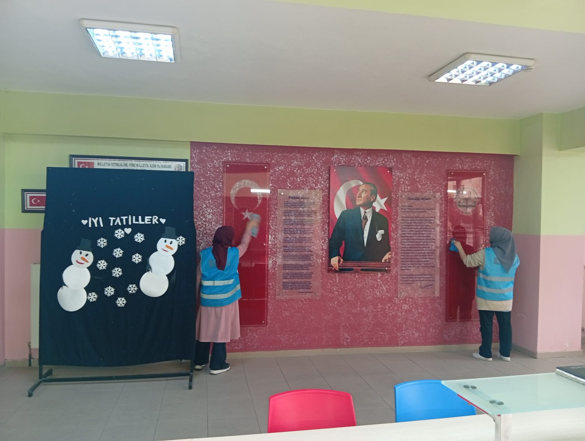 Müdürlüğümüz tarafından Muazzez Ser-Ved Amaratoğlu Ortaokulunda ara tatil döneminde okul temizliği çalışması gerçekleştirildi. Yürütülen temizlik kapsamında okulun sınıfları, koridorları, ortak kullanım alanları ve bina çevresi titizlikle temizlendi.